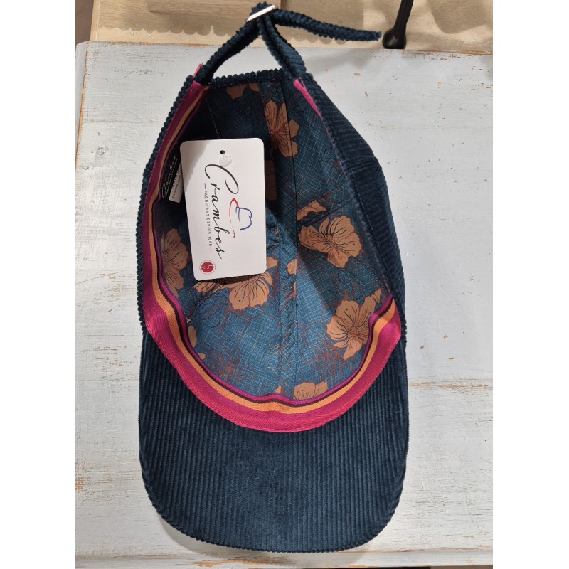 Petrol blue corduroy baseball cap.