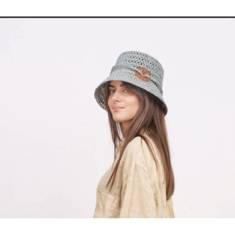 Sans Arcidet hat, entirely hand-crocheted from 100% raffia.