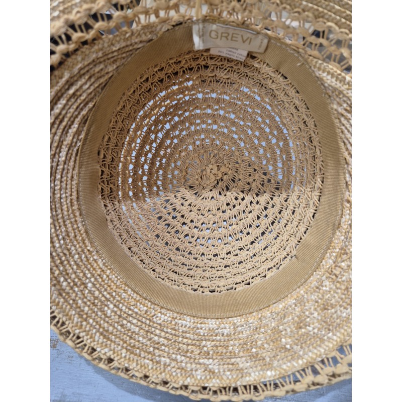 Bell hat by Grevi, made from sewn straw ribbon.