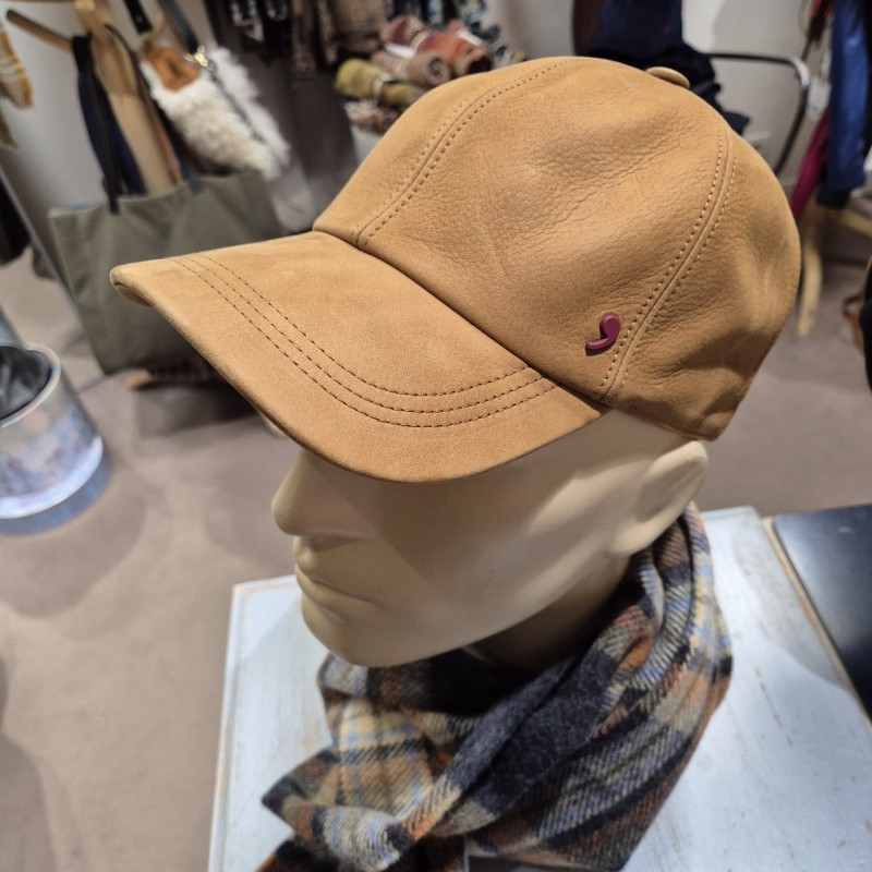 Casquette baseball Alfonso d'Este en cuir gras coloris camel.