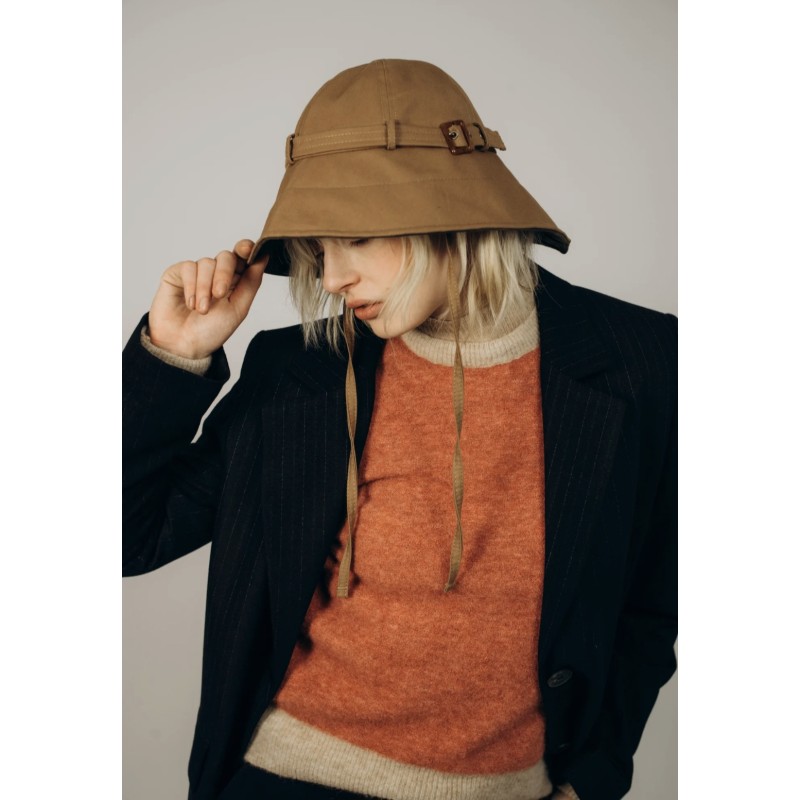 Chapeau de pluie de la maison Béton Ciré revisité et inspiré du trench-coat des pécheurs.