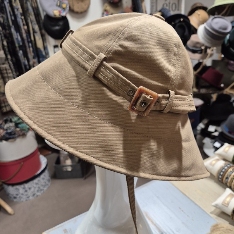 Chapeau déperlant habillé d'une ceinture sur le coté