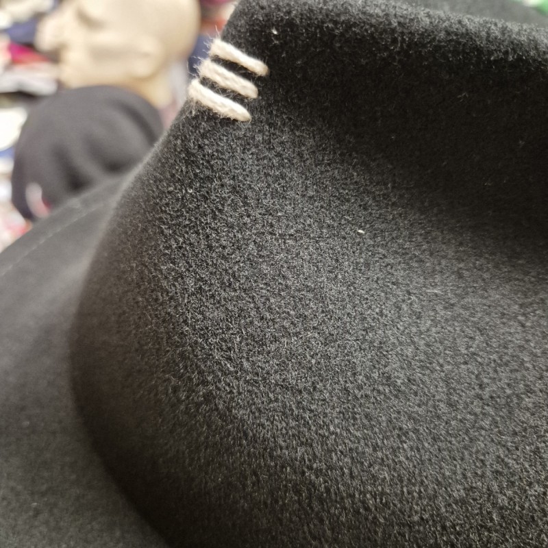 Il est orné d'une bande en gros-grain partielle et de coutures pincées au niveau de la calotte.
